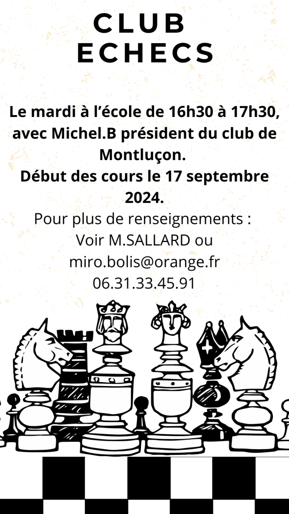 ECHECs 2024/2025, Mardi 16h30-17h30